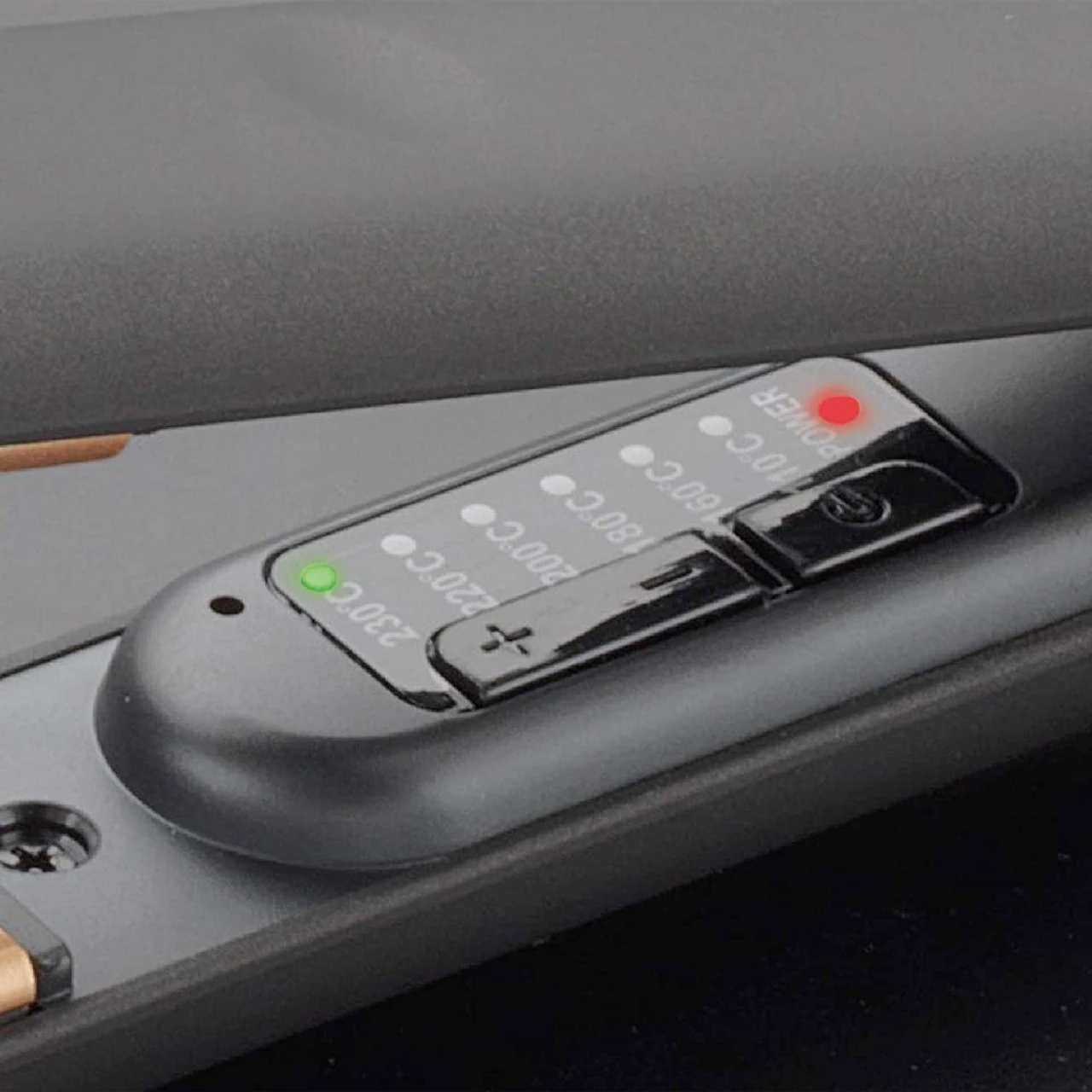 – Avec panneau de contrĂŽle numĂ©rique de la tempĂ©rature, ce qui permet de sĂ©lectionner la tempĂ©rature de coiffage parfaite pour chaque type de cheveux