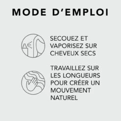 – Appliquez sur cheveux secs et travaillez sur les longueurs pour crĂ©er un mouvement naturel et une texture remodelable.